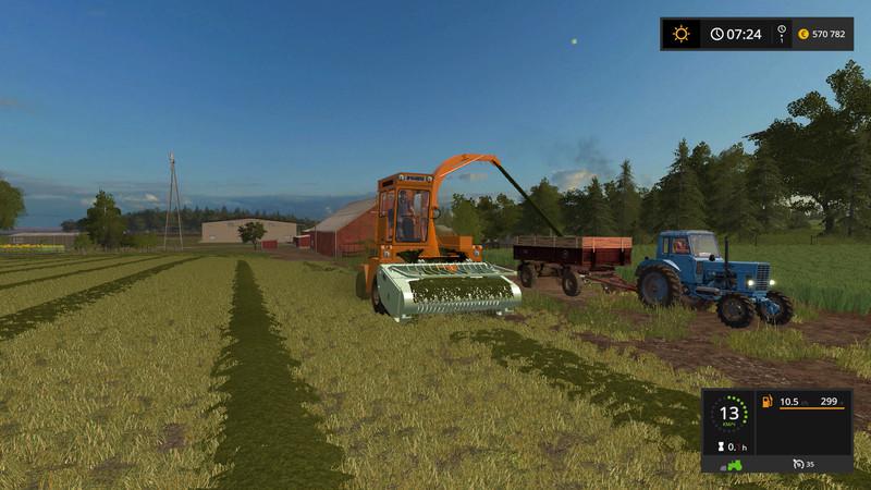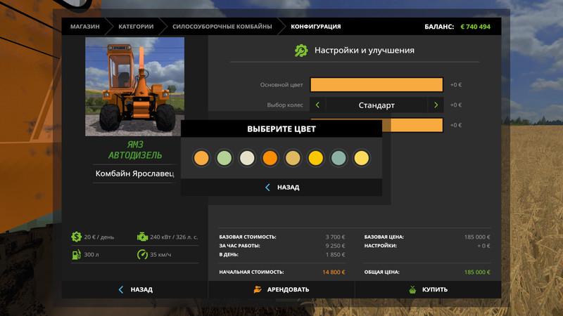 Brand: YASK-170A “Yaroslavets” sample 1986-1992. The kit includes a grass picker, a grass picker and a crop for mowing corn for silage. For the combine harvester, two types of round tires (Я170) can be selected. You can change the color of the combine and the harvesting aggregate. The technique gets dirty over time, it can be washed. The model is real. There are sounds from the real combine ЯСК.